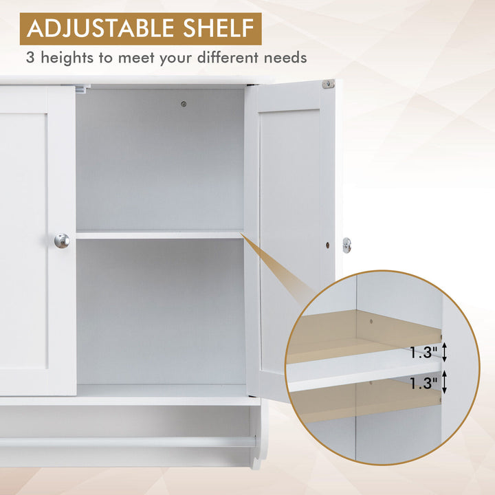 Versatile Storage Solution: Featuring a 3-level adjustable shelf, this cabinet adapts to your storage needs, allowing you to store items of various sizes with ease. The addition of a practical towel bar offers extra convenience, providing space to hang towels, ties, or belts.