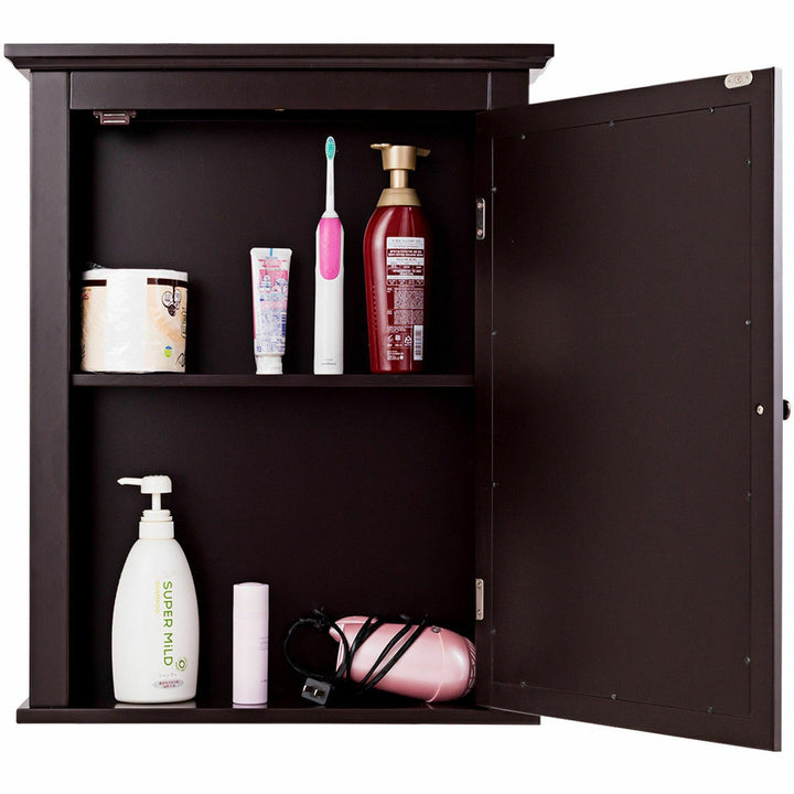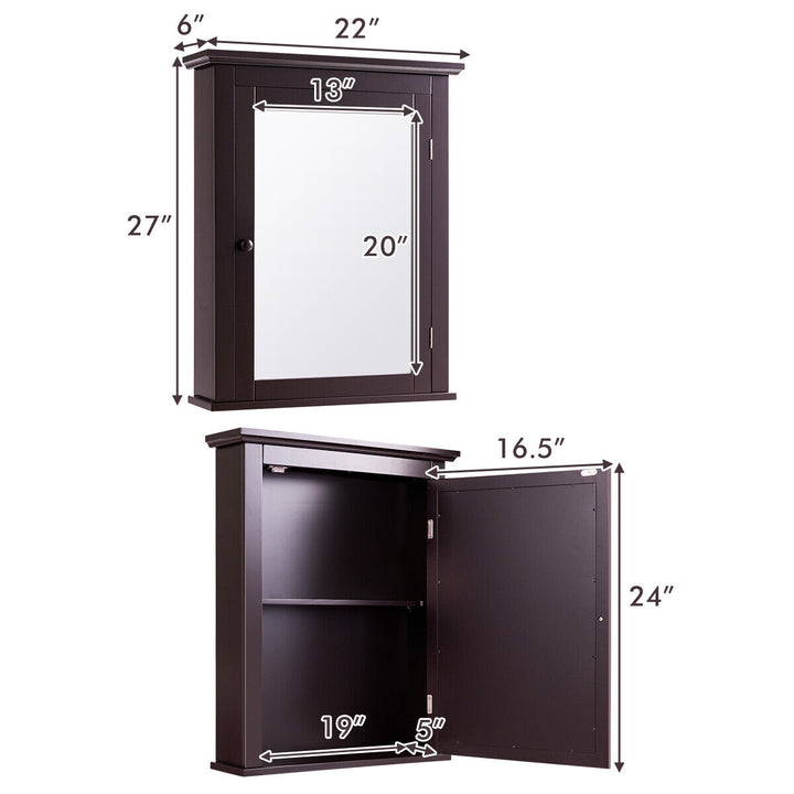 Wall Mount Bathroom Cabinet with One Mirror Single Door Adjustable Shelves Retro Handle