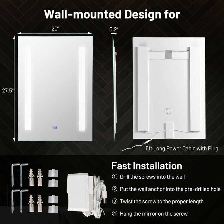 27.5-Inch LED Bathroom Makeup Wall-mounted Mirror