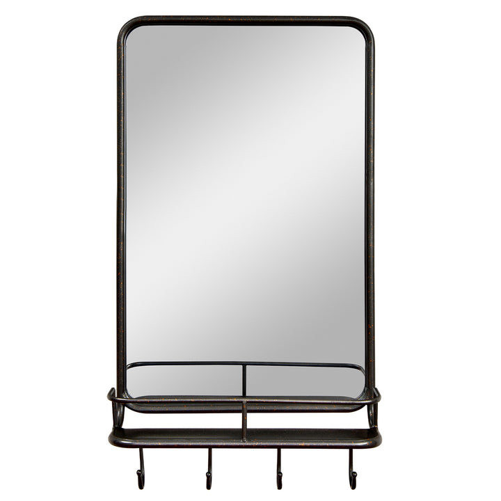 Wall Bathroom Mirror with Shelf Hooks Sturdy Metal Frame for Bedroom Living Room