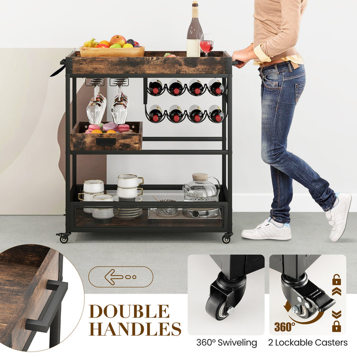 3-Tier Industrial Buffet Serving Cart with Wine Rack