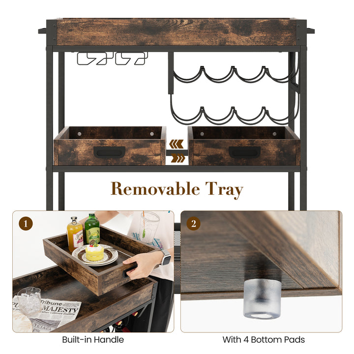 Versatile Removable Tray: Enhance your serving experience with the removable tray, designed for easy beverage and food service. Positioned on the second tier, it slides back and forth for convenient access and arrangement. The built-in handle ensures easy transport and removal.
