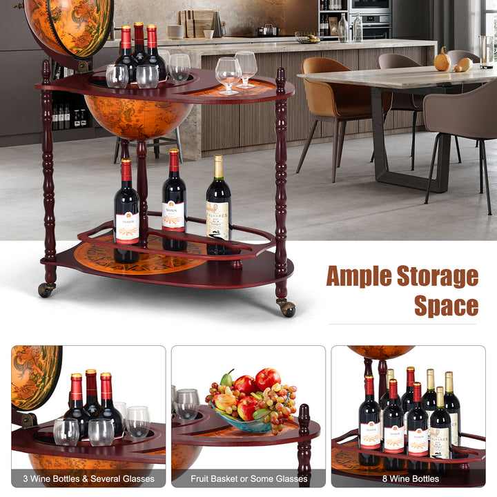Vintage Globe Rolling Wine Bar Cart with Extra Shelf