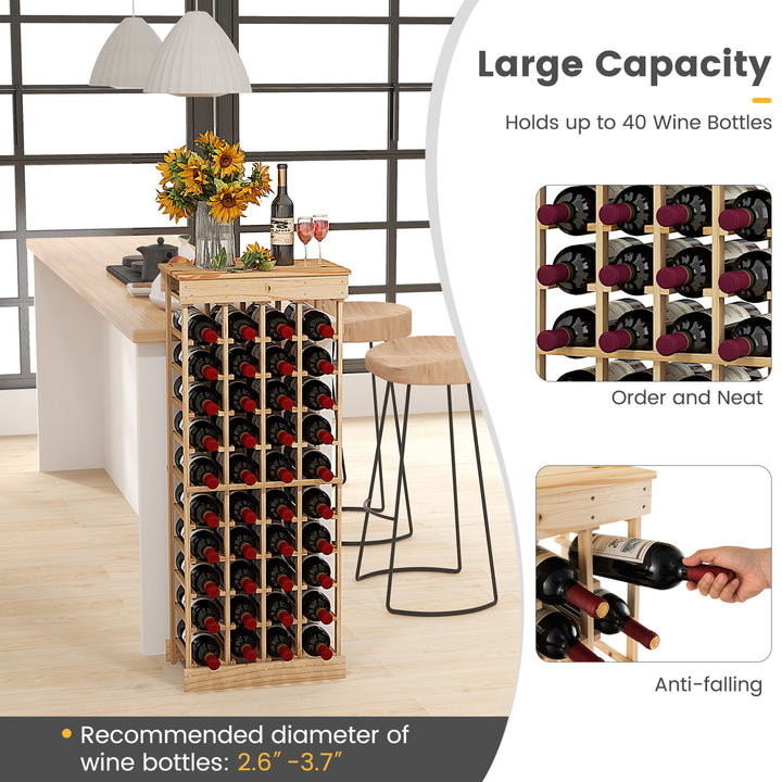 Capacious and Orderly Storage: With the capacity to hold up to 40 wine bottles, this wine rack ensures your collection is displayed neatly and accessibly. The modular design keeps bottles ordered, while anti-falling baffles provide added security, ensuring each bottle is snug and protected. Suitable for wine bottles with a diameter of 2.6"-3.7".