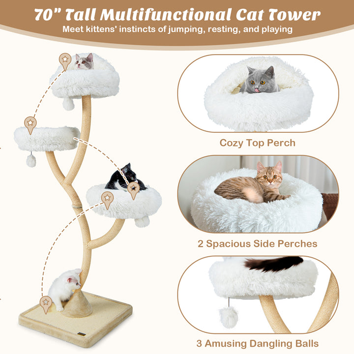 70 Inch Tall Cat Tree 4-Layer Cat Tower with 3 Perches and Dangling Balls