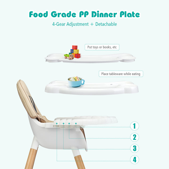 5-in-1 Baby Convertible Wooden High Chair with Detachable Tray