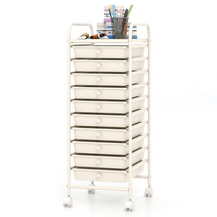 10 Drawer Rolling Storage Cart Organizer with 4 Universal Casters